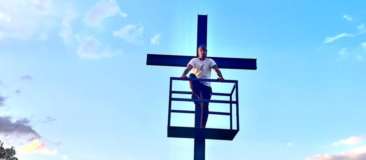 David Bravo en el momento de la construcción de la cruz
