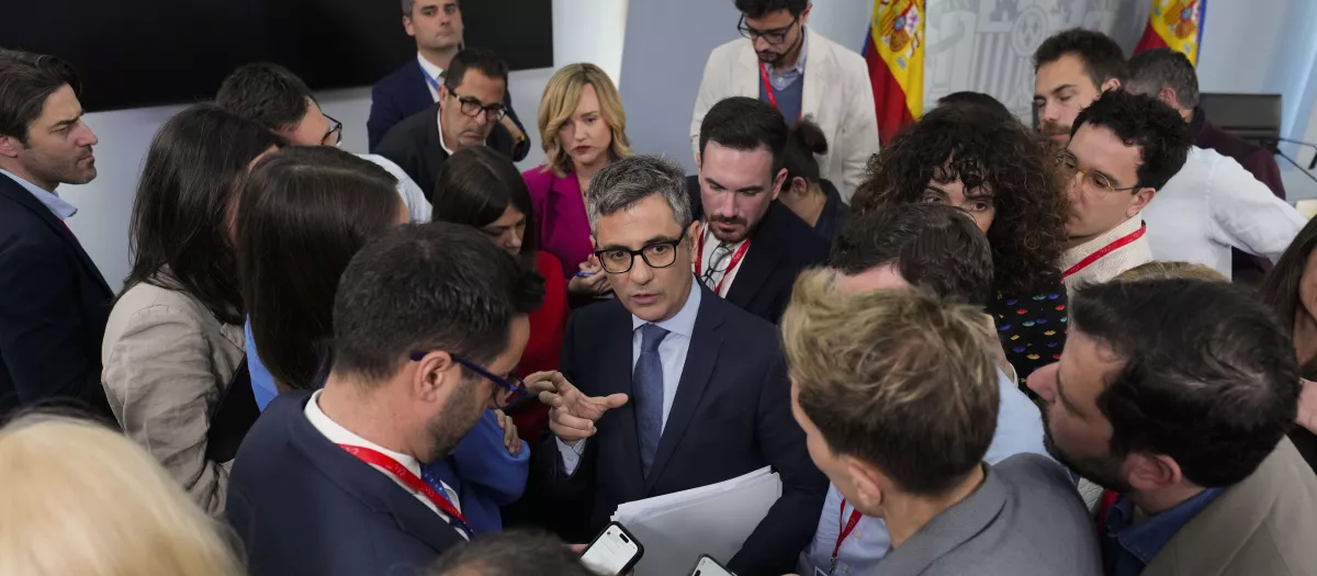 El ministro Bolaños, atendiendo a los periodistas tras la rueda de prensa