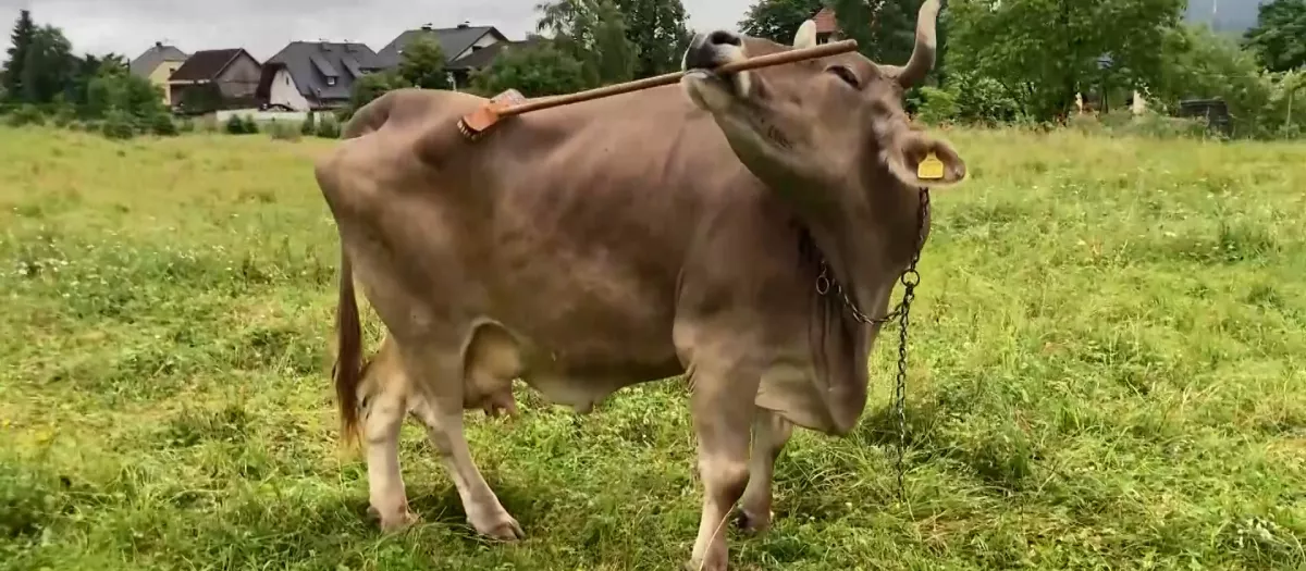 Witgar Wiegele, agricultor y panadero de un pequeño pueblo de Carintia, cerca de la frontera italiana, tiene a la vaca Veronika como mascota y observó que ocasionalmente jugaba con palos y los usaba para rascarse el cuerpo.