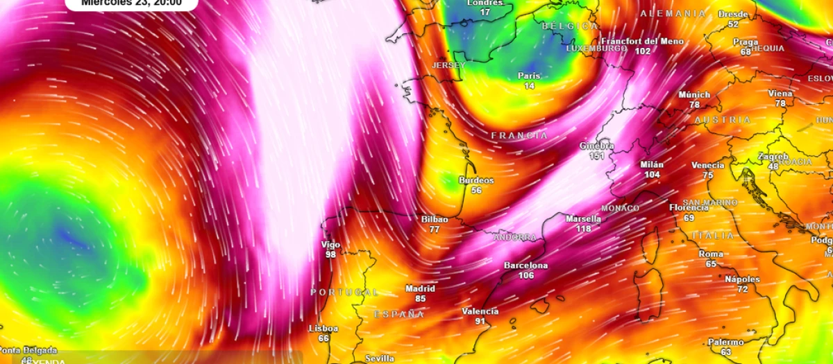 A medida que la vaguada se desplace, el miércoles será una jornada clave: el eje de la inestabilidad quedará sobre la vertical peninsular y las tormentas ganarán intensidad en Navarra, Aragón, Comunidad Valenciana y Cataluña. La entrada de vientos marítimos podría actuar como un ingrediente extra, favoreciendo la aparición de células convectivas organizadas, potencialmente peligrosas.