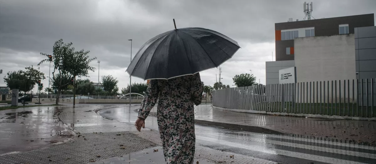 (Foto de ARCHIVO) Imagen de archivo de una mujer caminando bajo la lluvia en Castellón