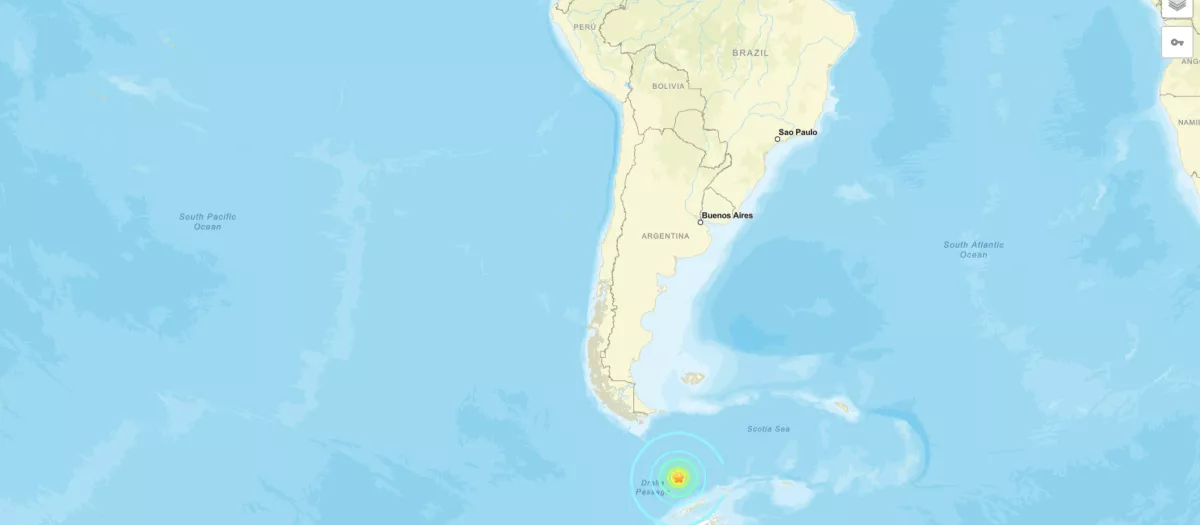 El USGS ha situado el epicentro del terremoto a unos 710 kilómetros al sur de Ushuaia, la ciudad más austral de Argentina, a una profundidad de 10,8 kilómetros.