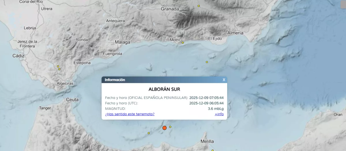 Un terremoto de magnitud 3,6 registrado esta madrugada en la zona de Melilla, con epicentro en Alborán Sur, ha sido sentido hoy por la población del área, según ha comunicado el Instituto Geográfico Nacional (IGN).