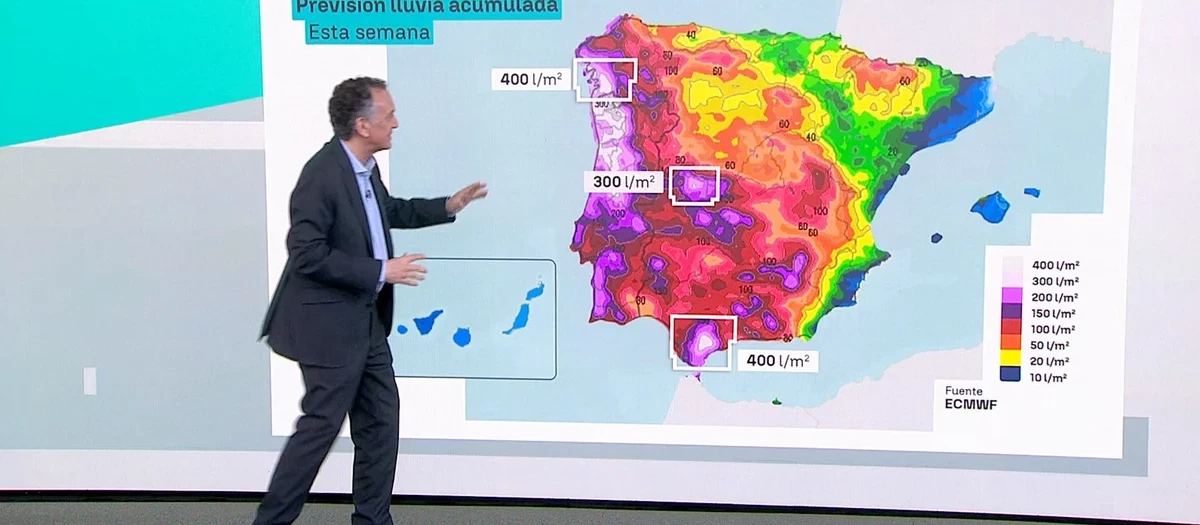 Lo que quiere decir el hombre del tiempo con este mensaje es que, a pesar de que los suelos no absorben más agua, la sucesiva entrada de frentes atlánticos y la previsión de grandes descargas para los próximos días anticipan unas jornadas complicadas, especialmente en Andalucía Occidental y Galicia.