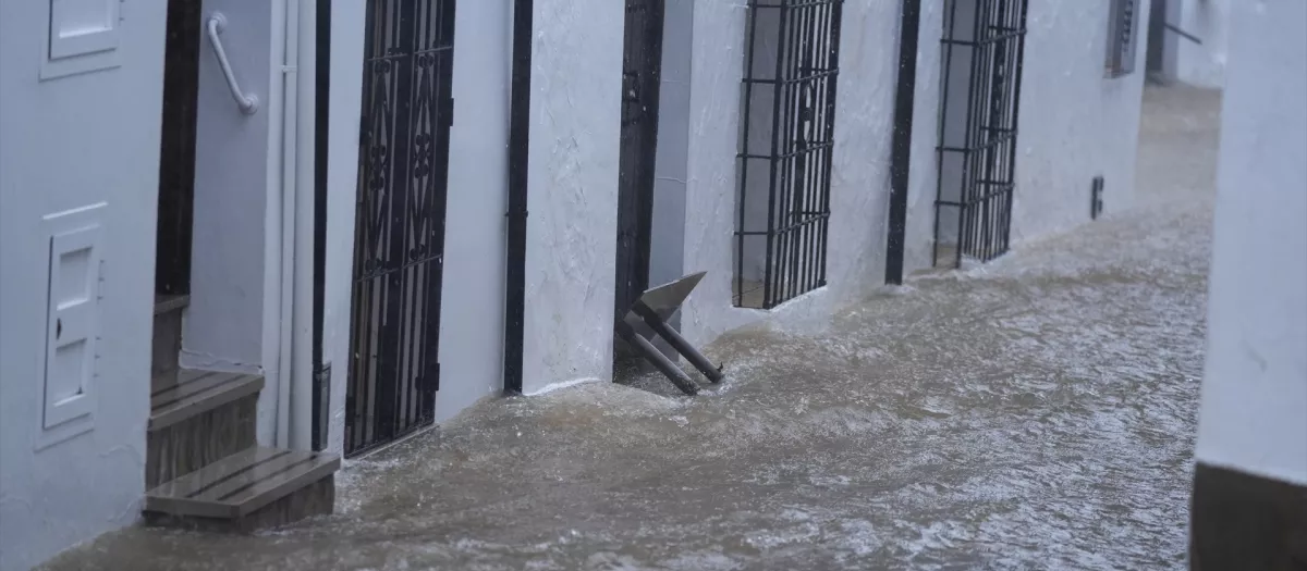 Calle convertida en río en la localidad gaditana de Grazalema tras el paso de la borrasca Leonardo