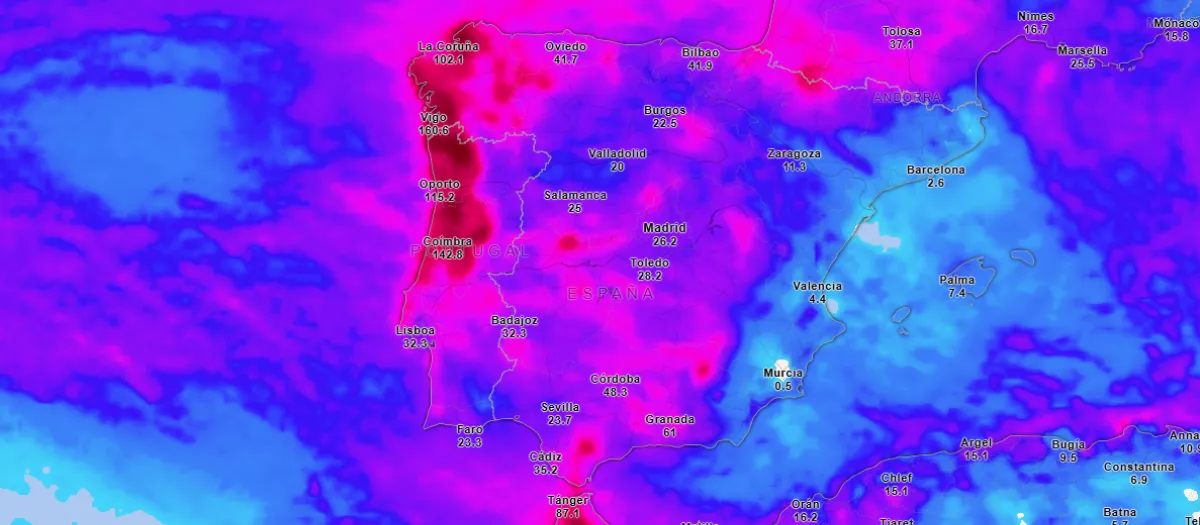 Según la previsión de Meteored, este nuevo episodio se dejará notar desde las primeras horas de la semana, con acumulados que irán ganando protagonismo conforme avance la semana. Los modelos apuntan a que el aporte constante de humedad será clave para explicar unas lluvias que no solo afectarán a amplias zonas, sino que también podrían prolongarse durante varios días, aumentando el impacto sobre un territorio que ya arrastra una situación delicada desde el punto de vista hidrológico.