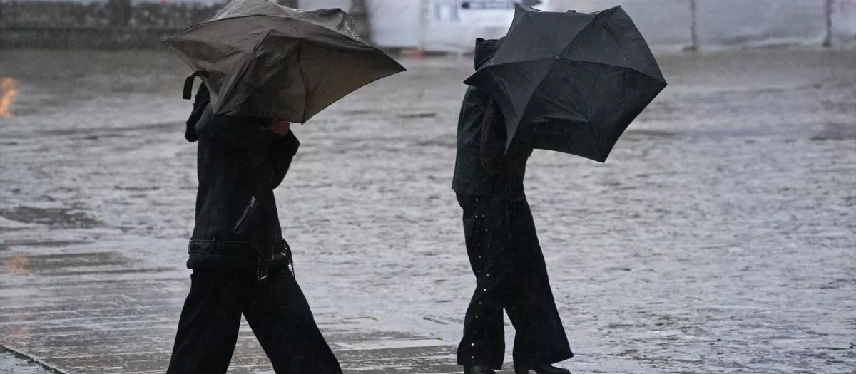 (Foto de ARCHIVO) Varias personas intentan sujetar sus paraguas, a 26 de enero de 2026, en Santiago de CompostelaEuropa Press