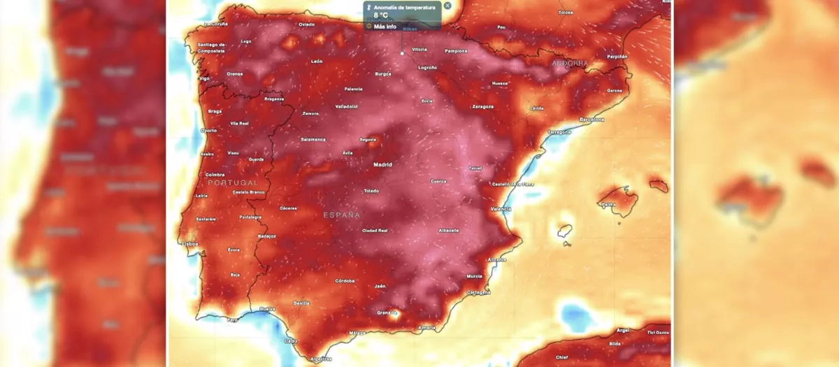 Gracias a esto, la semana comprendida entre el 23 de febrero y el 1 de marzo tendrá, en general, «temperaturas superiores a las habituales» para la época del año en la mayor parte del país, especialmente en los primeros días, cuando podrán superarse los 25 °C en puntos del área mediterránea. Y es que, afirma Meteored en la red social X, el mapa de anomalías desvela «una primavera adelantada, hasta 8 ºC por encima de la media».