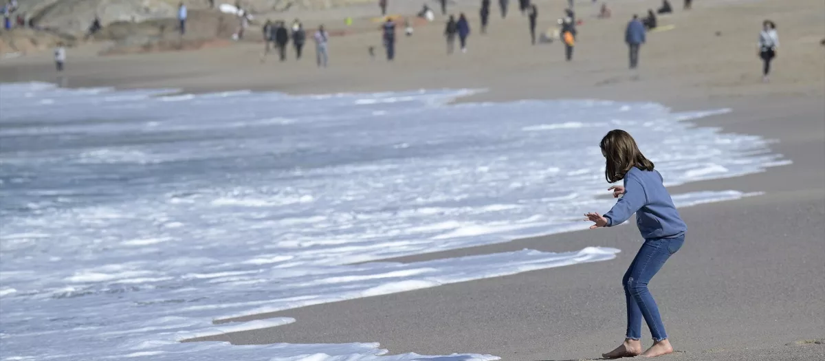 Varias personas disfrutan de un día de primavera anticipada con temperaturas de 20 ºC de máxima en la playa del Orzán en La CoruñaEuropa Press