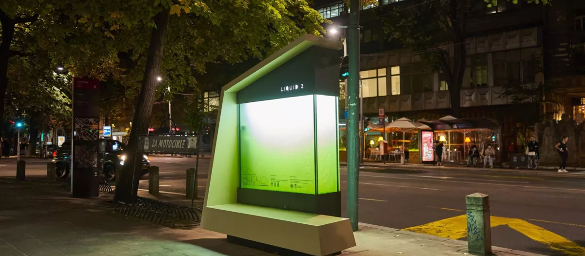 Se trata del llamado Liquid 3 o «árbol líquido», un innovador sistema de fotobiorreactor de energía limpia concebido para suplir la función de los árboles en entornos urbanos con altos niveles de contaminación, especialmente en aquellos lugares donde no resulta posible plantar ni mantener vegetación natural.